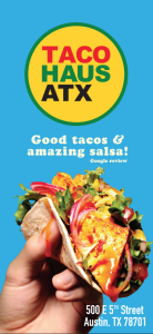 We are at the Live Music Capital of the World, Austin Texas, we also create songs for our food, and of course, we play them live when people come to the Taco Haus, or whenever we feel like.